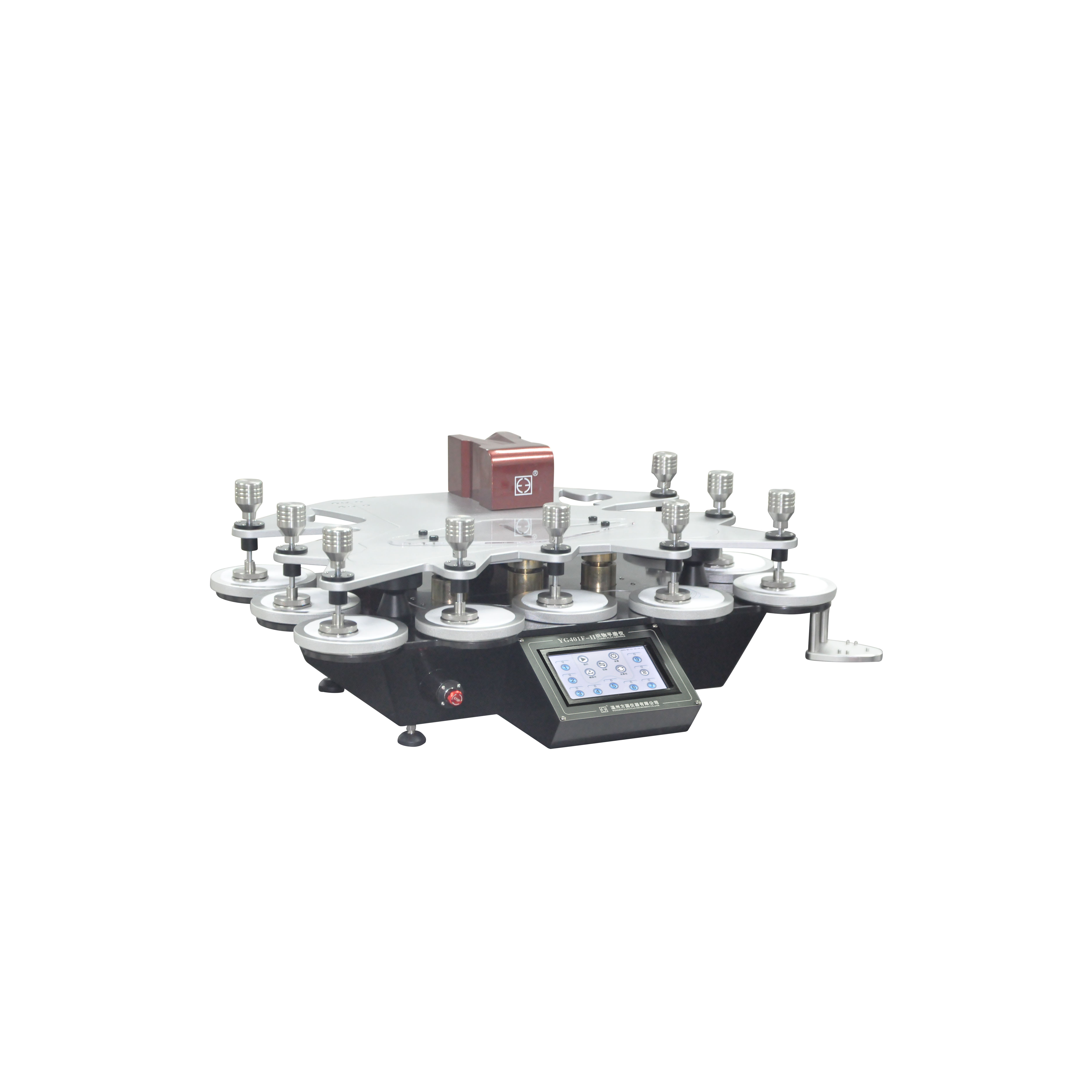 YG401F-II織物平磨儀(九工位) GB/T4802.2-2008,GB/T13775,GB/T21196.1,GB/T21196.2,GB/T21196.3,GB/T21196.4;FZ/T20020;ISO12945.2、12947;ASTM D 4966、4970、IWS TM112,可以增加球盤法測試功能(選配)等標準。