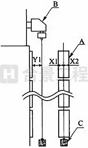 1 調整送棒裝置的XY單元獲得設備中心線(圖8.8.4-1),應使中心線與基準板間距Y1符合設備要求尺寸,中心線處于基準板中心位置,且X1=X2。