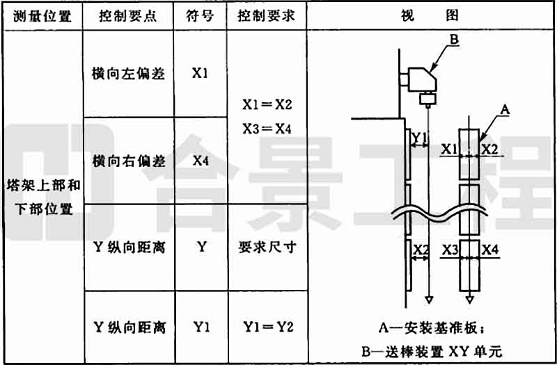8.8.2 送棒裝置垂直度調整時(圖8.8.2),上下兩部位橫向及縱向允許偏差均應為±0.5mm。